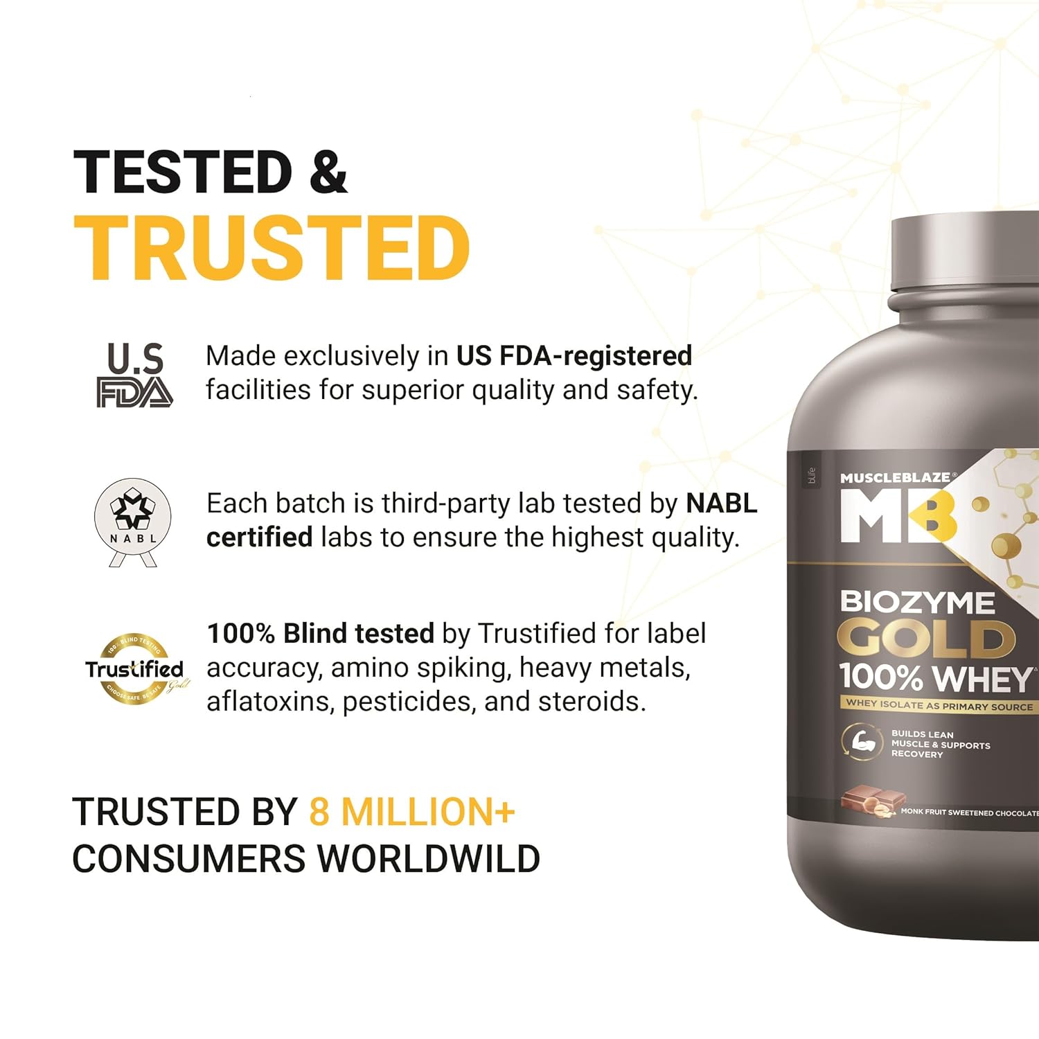 • WHEY ISOLATE AS PRIMARY SOURCE: Biozyme Gold’s premium protein blend of Whey Isolate & Whey Protein Concentrate contains Whey Isolate Protein as its primary source, providing you with 26g of high-quality protein in every scoop.
