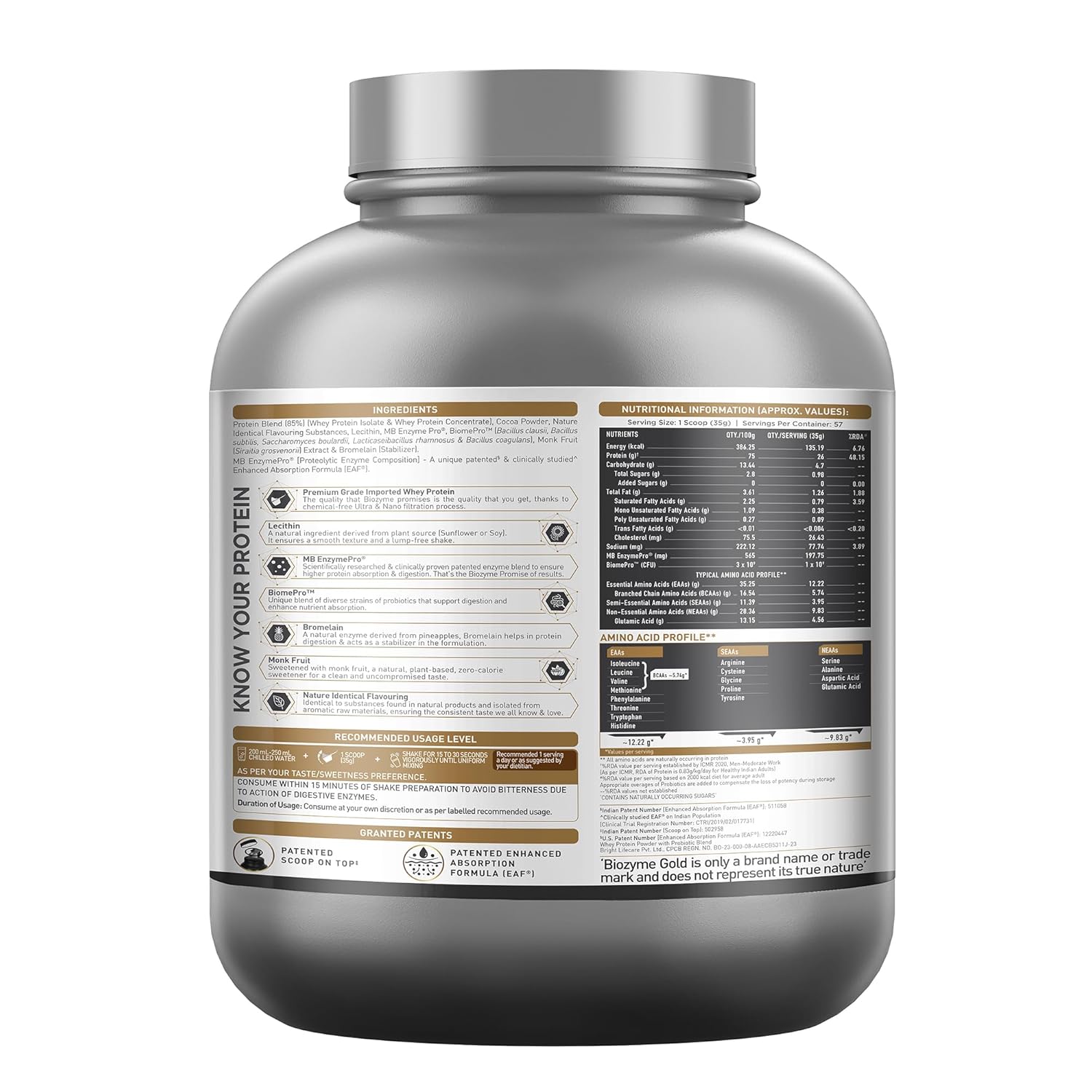 • ADDED BIOMEPRO PROBIOTICS: Each serving of Biozyme Gold Whey Protein contains 1 billion CFU probiotics, supporting healthy digestion & nutrient absorption in your body.
